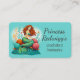Super cute mermaid princess with balls of yarn on these business cards for a knitter or knitting, crochet, homespun or handspun yarns, personalized with your choice of colors, fonts and text, perfect for products and craft show packaging.