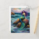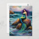 A beautiful mermaid with purple hair sits and takes a break on a rock fantasy AI generated art