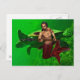 Merman simmar under vatten med gigantisk havssköldpadda.