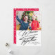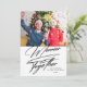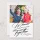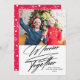 Önska dina vänner och familj i God jul med detta moderna, enkla fotojulkort. Design innehåller kalligrafiskriptet "merrier joint" i handskrivet trendig, ett foto och ett meddelande. Perfekt för par, nylökar osv.