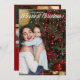 Jag önskar dig den bästa julen. Chic vit kalligrafi över fullt familjefoto. Lägg till ett andra foto på kortet över den vackra röda baksidan. Ett underbart modernt helgdag-kort.