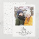 Ett modernt fotokort med ett sött vismiskt helgdag som läser MERRIEST CHRISTMAS med en handskriven hjärtanslutning under en söt snöritad träd-scen. Utrymme för anpassningsbarnas foto och meddelande. På baksidan finns en söt minimalistisk punkt mönster.