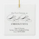 Märka och gifta prydnadsföremål för julfoto som du kan anpassa med ditt favoritfoto och din personliga formulering. Elegantens typografiska utformning med snabb kalligrafi och enkel att redigera för ett gift par. Den här helgdag är skriven med Merry & Married på ena sidan och redigerbar text på den andra. Exempeltexten lyder: "Vår första julklapp som Mr & Mrs [efternamn] älskar livet som make och hustru sedan [bröllop date]". Hela texten, förutom Merry & Married och Mr & Mrs, är redigerbar.