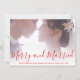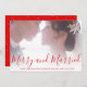 Skicka ut helgdag som ett nytt par med det här platta julkortet med en modern och enkel design med meddelandet "Merry and Married" i en röd elegant över ditt favoritfoto. Baksidan är röd med ett snöfall mönster.