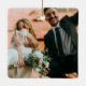 Minimalistisk typ Merry och Married Photo jul-prydnad med enkel vit överläggningstypografi på framsidan. Baksidan har ett andra foto. Klicka på knappen Redigera om du vill anpassa designen.