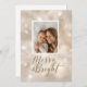 Merry & Bright Beige Gold Christmas Photo Julkort
