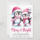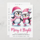 Merry Bright Ice Skating Penguins Rosa jul Julkort