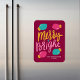 Sprid muntra den här julhelgen genom att ge dina kära en ljus och färgstark helgdag. Den icke-fotofärgade magneten har "Merry + Bright" i guld, turkos, rosa bokstäver mot bakgrund av en helgdag/mörk magenta. Anpassa den moderna helgdag magnet genom att lägga till ditt namn och året i vit text. Designad för att samordna med vår Merry & Bright jul-helgdag.
