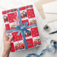 En snygg och smart julomslutning som är papper med dina foton. Anpassa dina julklappar med två olika foton av vänner eller familj. Ett speciellt julmeddelande, "Merry & Bright" i en silver-gradient, visas på en kvadrat. Den diagonalt motsatta kvadraten har söt snöflingor på julvintern. Det här är rött och silver är temat, men det finns andra alternativ i färg.