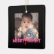 Illustration av rosa blixt med röd kontur inkorporerad i Merry & Bright Text över svart bakgrund. Anpassa med fotot.