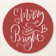 Merry & Bright Script Calligraphy Red Jul Underlägg Papper Rund
