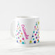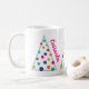 Den här söta och färglösa mugg har ett modernt träd med adorberade färgstarka bubblor. Mugg har tre träd som skisserades i silver. Skripttypografi omfattar namn på mottagaren och frasen Merry & Bright. Färg omfattar rosa, blått, lila, orange, cyan eller teal och kalkgrönt. Detta kommer med all säkerhet att ge ett leende och ingen oro över att mugg går iväg eftersom det har ett namn på det.
