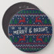 Embrace the cozy charm of the holidays with this playful ugly Christmas sweater design. Set against a deep navy blue background, bold red reindeer leap among vibrant green evergreen trees, all outlined in crisp white stitching. Delicate snowflakes and zigzag patterns enhance the winter wonderland vibe, while the cheerful, slightly distressed white font reads "MERRY & BRIGHT" at the center. Perfect for celebrating festive gatherings, cozy nights by the fire, or sharing warm holiday wishes, this design radiates cheerful, snug holiday spirit.