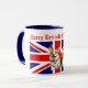 En glatt brittisk orgi med julrenar som hoppar ut i luft och i den brittiska flagga. "God brittisk jul" text