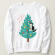 Lägg till lite roligt för kattdjur till firande med den här visuella illustrationen av en eländig katt som skalar ett dekorerat Julgran. Det lekande "God jul!"-meddelandet kompletterar denna vackra och humoristiska helgdag, perfekt för kattälskare överallt.