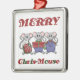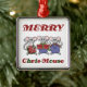 Tre julmöss med gåvor från helgdag och röd text och grönt som lyder "Merry Chris-Mouse" på helgdag för att dekorera träd eller ge som gåvor!
