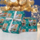 Modern Merry Christmas wrapping paper personalized with 4 photos and family name. A fun and creative way to shower your seasonal greetings to family and friends.