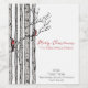 Merry Christmas Birch Trees & Cardinal Birds White Vinflaska Etikett