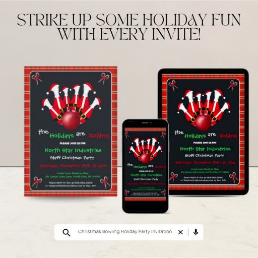 This festive Christmas bowling greeting card features Santa-themed bowling pins and a bright red holiday bowling ball set against a cheerful Christmas plaid background the perfect design to spread seasonal fun and party cheer.