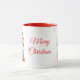 The mug boasts a vibrant red rim and handle against a crisp white body, adding an extra festive touch that complements the design.