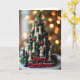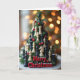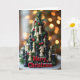 This card has a cool picture with a Christmas tree made from chess pieces 🎄. The tree looks super fancy, mixing black and white chess pieces with red berries. It sits on a wooden base and the words "Merry Christmas" in bold red letters. The background is all golden and blurry, like fairy lights ✨. Overall, the card has a cozy and dreamy feel, with the chess pieces blending into the tree. It's a fun mix of chess and Christmas stuff, making it perfect for holiday cheer!