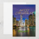 Merry Christmas, Chicago River at sunset, decorative holly.