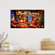 Merry Christmas Decorative Artwork with Kitten Poster