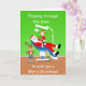 Santa’s in the dentist’s chair getting his teeth checked and polished by his trusty elves, while his favorite reindeer looks on proudly. A cheerful and festive card to spread holiday smiles to your favorite dentist!