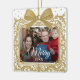 Merry Christmas Elegant Bow Present Photo Collage Ceramic Ornament | Gold Luxe Personalized Picture Keepsake
