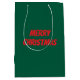 merry Christmas elegant green and red personalized script gift bag, create your own.
