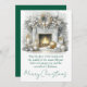 Merry Christmas – Glowing Fireplace with Frosted Garland & Gold Lanterns Holiday Card