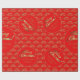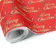 Merry Christmas Elegant Faux Gold Foil Script Golden Text Pattern on Bright Red Background Holiday Season Glossy or Matte Gift Wrapping Paper, you can add name or text