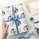 This customizable gift wrapping paper showcases the festive greeting "Merry Christmas" in shimmering gold and silver fonts, beautifully rendered in elegant, artistic calligraphy forming the shape of a Christmas star. It also features two round-shaped customizable photo placeholders, each framed with a refined, decorative border. Add your cherished photos for a timeless, professional gift wrap that radiates the joy and warmth of the season! Whether for a Christmas wedding, a wedding anniversary, or any special family celebration, this personalized photo gift wrapping will bring a distinctive and heartfelt touch to your holiday gifting.