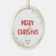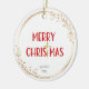 This round ornament features a crisp white background adorned with the phrase "Merry Christmas" in vibrant red letters, where the "T" is uniquely styled as a radiant golden cross. Encased in a delicate golden frame, this ornament adds a touch of elegance to your holiday décor. Perfect for your tree or as a thoughtful gift to loved ones, this piece is sure to bring joy and inspiration throughout the season.