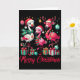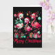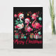 Merry Christmas Lights Flamingo Santa Hat Snow Xma Kort