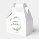 Favor boxes featuring a minimalist watercolor wreath with red floral and green foliage accents. This elegant wreath frames the greeting "Merry Christmas". Easy to personalize with your family name.