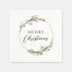 Paper napkins featuring a minimalist watercolor wreath with red floral and green foliage accents. This elegant wreath frames the greeting "Merry Christmas".