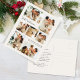 Send joyful holiday wishes with this modern family photo collage Christmas postcard featuring a warm, neutral-toned collage layout. The front showcases seven photo slots in a clean grid format, making it perfect for sharing family moments, pet portraits, or seasonal highlights. Text reads “We wish you a very Merry Christmas and a Happy New Year with love from” and your family name, offering space for personalized greetings that stand out in classic typography. The soft cream background and high-contrast layout give this card a timeless, cozy feel that complements both color and black and white photos. The back of the postcard includes a pre-formatted message on the left with ample room for personalization, plus space for mailing details on the right, making it a convenient and stylish postcard option. Ideal for families who want to feature multiple memories in one cohesive design, this photo card blends festive warmth with minimalist elegance. This card is a perfect choice for those who value thoughtful design, simplicity, and heartwarming connection. Whether mailed to loved ones near or far, it captures the magic of the season in a modern, gallery-style format that’s sure to be treasured.