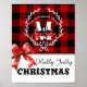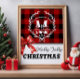 Merry Christmas Monogram Wreath Buffalo Plaid Poster