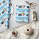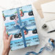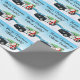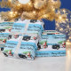 This charming Christmas wrapping paper for a child to give to their Office Daddy features Santa and his trusty red-nosed reindeer partner leaning against a police car topped with a festive Christmas tree.