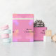 Printed with pink snowflake patterns in the background with text template for 'Merry Christmas'!
