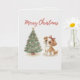 Merry Christmas Puppy Card Cute Dog with Tree Kort