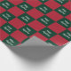 Merry Christmas is in a white script. This checkerboard wrapping paper has a classic Christmas color palette. The wrapping paper has a traditional red and green color scheme.