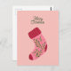 Merry Christmas Stocking PostCard with a cute pink sock.