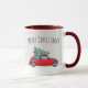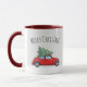 Christmas Cup with cute Christmas Tree and Car Illustration. Perfect for a warm Cup of Coffee or a hot Chocolate!