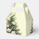 This favor gift box is printed on with a single Christmas tree in green. Festive text of Merry Christmas wraps around the box on ivory color background with small decorative gold stars.