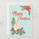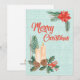 A warm and elegant Christmas card featuring two glowing candles surrounded by holly leaves, red berries, pinecones, and evergreen branches. A festive poinsettia decorates the top corner, framing the red “Merry Christmas” greeting. This card blends classic holiday elements with a soft, textured background for a heartfelt seasonal message