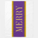 Den här färgstarka helgdag har ett brett, burgudtt centrum för vågrät rand som beskrivs i gyllene gult och brunt streck mellan vita yttre ränder. Den valfria MERRY-texten, om den används, kan vara personlig.