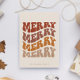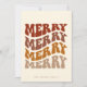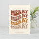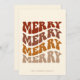 Merry Merry God jul Card: en retro-design med en vågigt vintage-typografi och en muterad brun och beige-palett.