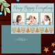 Anpassa de här tre helgdagskorten för fotokollage i en enkel guld- och pastellblå Merry Lycklig All interreligiös design. Ett stiliserat handskrivet skript i blått med en liten skugga i vitt ger intresse och raden med fem faux guld Menorahs och fyra Julgranar gör dessa platta helgdagskort till ett val av snyggt för din jul och för Hanukkah hälsning. Kort som går tillbaka till visning, vit text som tillval i en bakgrund med solid mörk blått som matchar texten och gräns runt dina tre bilder framtill. Designad för blandade mångkulturella familjer eller som en sekulär design för helgdagarna är detta blått och guld-motiv perfekt för att fira de kristna och judiska helgdagarna tillsammans.